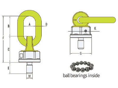 Con un límite de carga de trabajo que oscila entre 0.4t y 50t, estos cáncamos giratorios proporcionan una solución versátil para aplicaciones de elevación exigentes. Diseñados para una rotación completa de 360 grados alrededor del eje del perno y un rango de giro de 230 grados, permiten una orientación precisa de la carga para que coincida con el ángulo óptimo de elevación. Esta flexibilidad reduce el riesgo de daños tanto en el punto de elevación como en la carga, lo que garantiza operaciones más seguras y eficientes en una amplia gama de industrias.